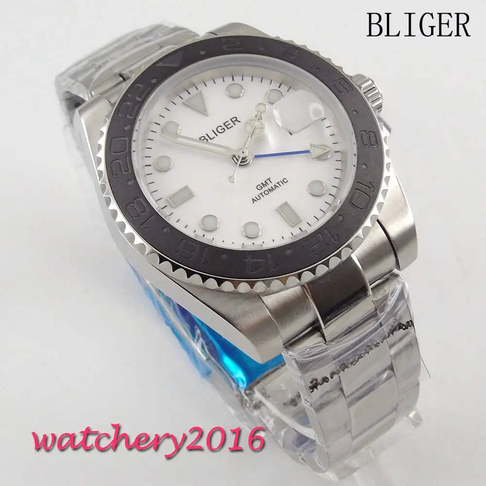 Free Shipping 43mm Bliger White Dial Luminous Hand Deployment Rotating Bezel Sapphire Glass GMT Automatic Movemen are attractive to buyers from around the world
